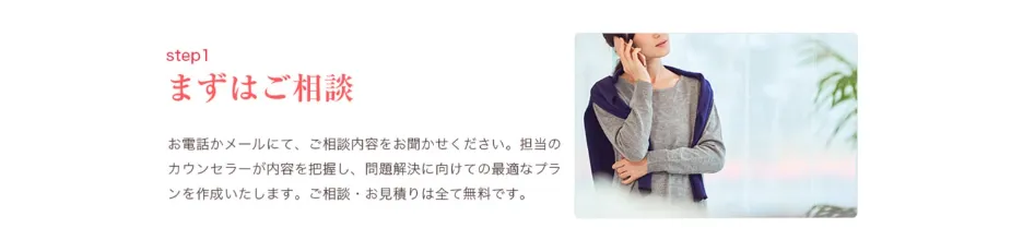 専門カウンセラーによるカウンセリングは無料で実施してくれるため、費用や調査内容についてしっかりと話を聞いたうえで依頼するかを検討できます。