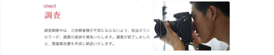 また調査中は、担当カウンセラーから進捗状況について逐一報告してくれるため、安心して過ごせますよ。